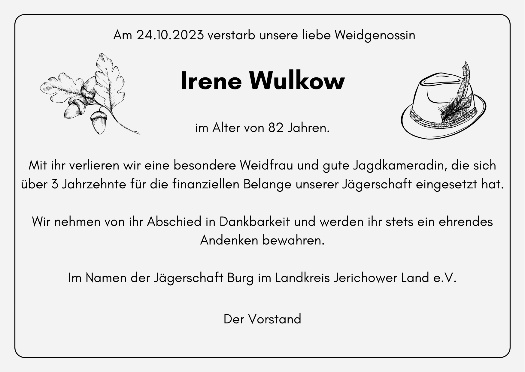 Nachruf Irene Wulkow