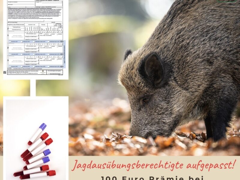 Quelle: LJV Sachsen-Anhalt Zur Früherkennung der ASP beim Schwarzwild bittet das Landesamt für Verbraucherschutz Sachsen-Anhalt (LAV) per Pressemitteilung (Nr.37/2023) um die Mitarbeit aller Jäger durch Bereitstellung von Probematerial. Es wird um Proben von Schwarzwild bei Vorliegen einer oder mehrerer der folgenden Kriterien gebeten: Funde von Tierkörpern bzw. Skelettresten von verendetem [...]