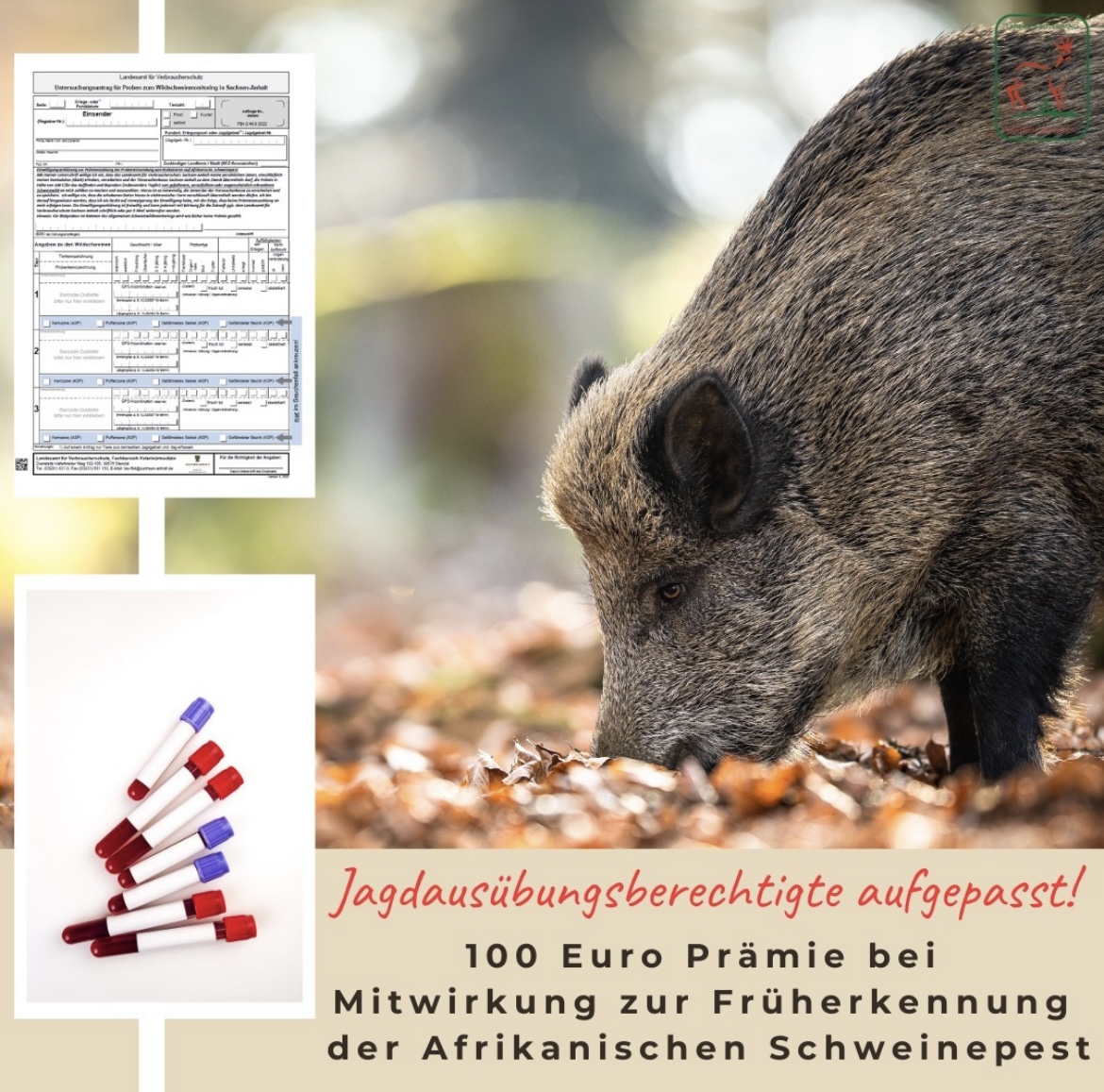 Zur Früherkennung der ASP beim Schwarzwild bittet das Landesamt für Verbraucherschutz Sachsen-Anhalt (LAV) per Pressemitteilung (Nr.37/2023) um die Mitarbeit aller Jäger durch Bereitstellung von Probematerial.