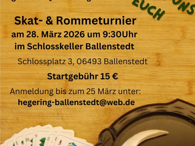 Wir laden wieder ein zum Skat- und Rommèturnier.