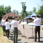 Ebenfalls am Samstag, 10.06., fand der 25. Naturschutztag in Friedrichsbrunn im Kurpark statt. Ausrichter war der Harzklub Friedrichsbrunn. Die Jägerschaft Quedlinburg war mit dem Lernort-Natur-Mobil dabei. Bei traumhaftem Wetter und einer super Organisation strömten die Leute zu dieser interessanten Veranstaltung. Zur Eröffnung spielten unsere Jagdhornbläser. Im weiteren Verlauf waren Stationen aufgebaut. An diesen konnten die Kinder verschiedene Aufgaben erfüllen und Tests bestehen. An jeder Station gab es einen Stempel für den Laufzettel, mit welchem die erfolgreiche Teilnahme bescheinigt wurde. Am Ende wartete ein toller Preis auf die kleinen und großen Naturschützer. Bei der Jägerschaft Quedlinburg gab es ein Quiz zu absolvieren, bei welchem Wildtiere ihren Fährten zugeordnet werden mussten. Die Kleineren konnten die Tiere an Präparaten bestimmen. An unserer „Teste-deine-Sinne-Bar“ geriet so manches Kindergesicht ins Staunen. Alle Teilnehmer haben die Tests mit Bravour gemeistert. Ein Highlight am Stand der Jägerschaft Quedlinburg war der Besuch des Falkners Michael Rückrieme mit seiner Uhu-Dame Paula. Die Besucher stellten viele Fragen zu dieser Großeule, welche im Deutschen wie im Lateinischen (Bubo Bubo) ihren Namen zu rufen scheint. Paula machte allerdings nur noch größere Augen, als sie sowieso schon hat und schwieg. Das Ende dieser gelungenen Veranstaltung läuteten dunkle Wolken am Himmel ein.
