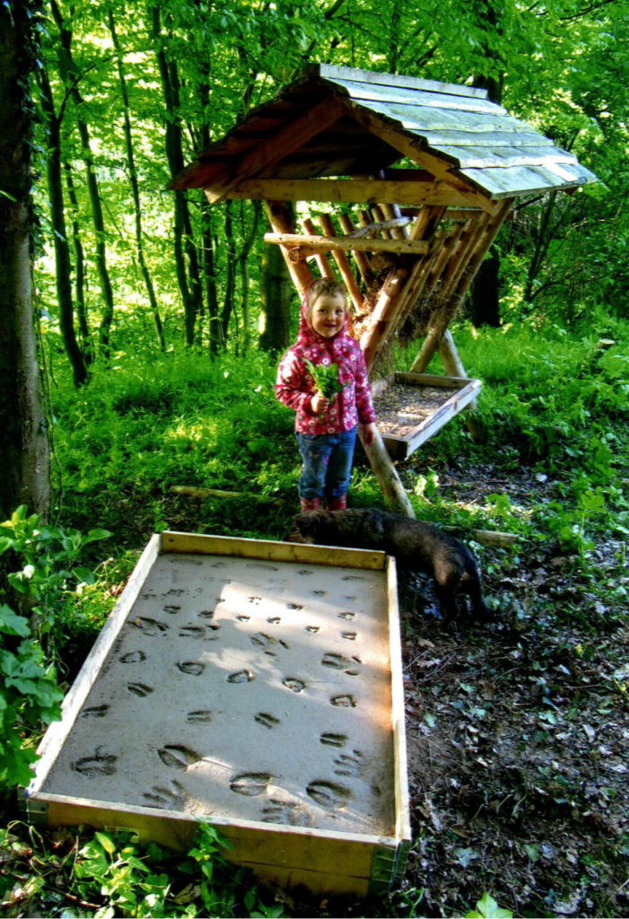 Auch deswegen treibt es ihn unermüdlich an, der nächsten Generation auf den Einklang zwischen Gesellschaft und Natur hinzuweisen. „Auch sie sollen sich glücklich schätzen, dass wir das alles nutzen und erleben dürfen. Und dass dies keine Selbstverständlichkeit ist, sondern wir auch etwas dafür tun müssen, dass es so bleibt.“ Wie ernst es ihm damit ist, lässt sich an der Entwicklung seines „Waldfuchs-Projektes“ bemessen. Schnell bemerkte der Vatteröder, dass die Sache wachsen muss. Und dass es aus seiner Sicht nicht ausreicht, nur in der Kita und bei Spaziergängen dem Thema gerecht zu werden. „Es fehlte der Wald“, erinnert sich Michael Rückrieme. Ein kleines Wäldchen hatte er schnell gefunden, länger dauerte es dagegen, bis er dieses dann auch nutzen durfte – sogar kostenlos. Nachdem diese Hürde genommen war, entwickelte sich alles ziemlich rasant. Gemeinsam mit den Kindern wurde der „Wald“ aufgeräumt, mit Hilfe von Freunden und Sponsoren eine Hütte errichtet und eine ein dazugehöriges Stück Wiese urbar gemacht. Der Grundstein war gelegt, um ein wahres Lehrparadies aufzubauen. Es gibt eine Fütterungsstelle, ein Insektenhotel, Angebote, die die Sinne ansprechen, Tierfährten in Beton abgebildet, Nistkastenrevier und, und…