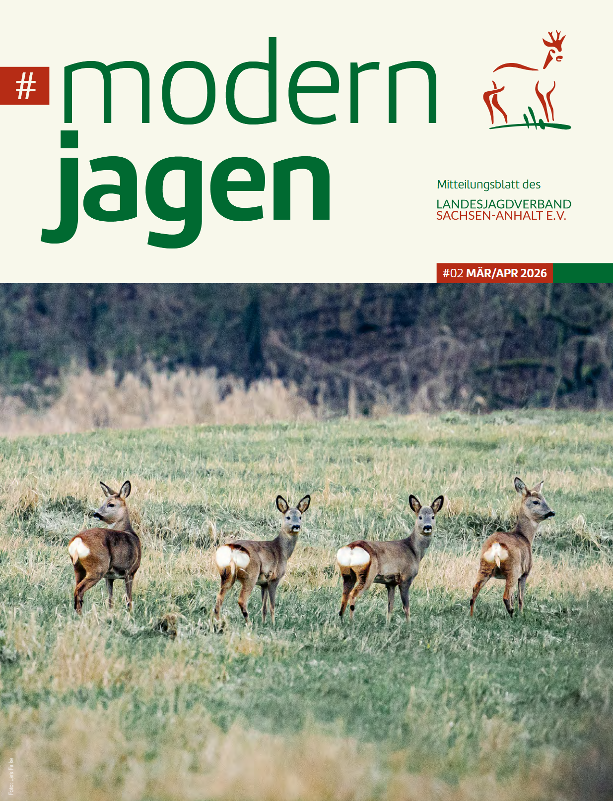 #modernjagen ist das Mitteilungsblatt des Landesjagdverbandes Sachsen-Anhalt e.V.. Verbandsmitglieder erhalten das 15-seitige Heft mit Neuigkeiten aus Jagdpolitik, gesetzlichen Änderungen, Verbandsleben, aktuelle Veranstaltungstermine, Weiterbildungen und Förderaktionen wie Hundeschutzwesten per Post zugestellt. Es erscheint alle 2 Monate und wird aus Mitteln der Jagdabgabe finanziert.