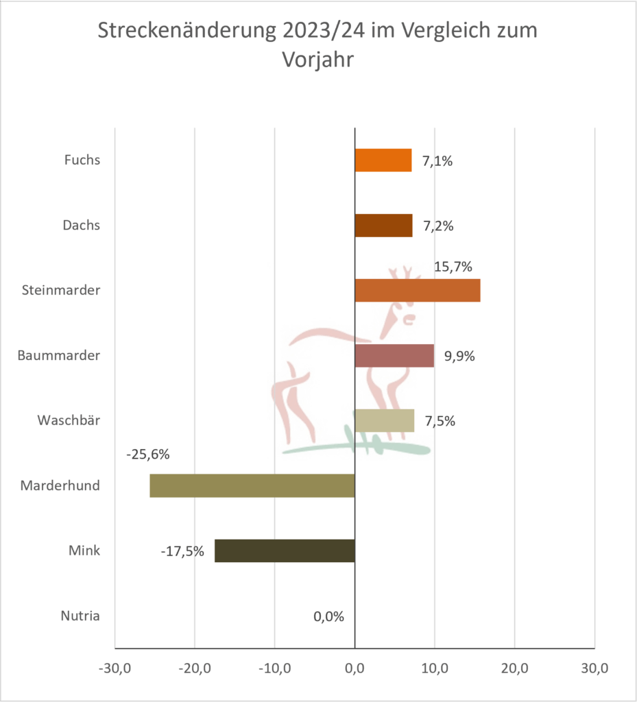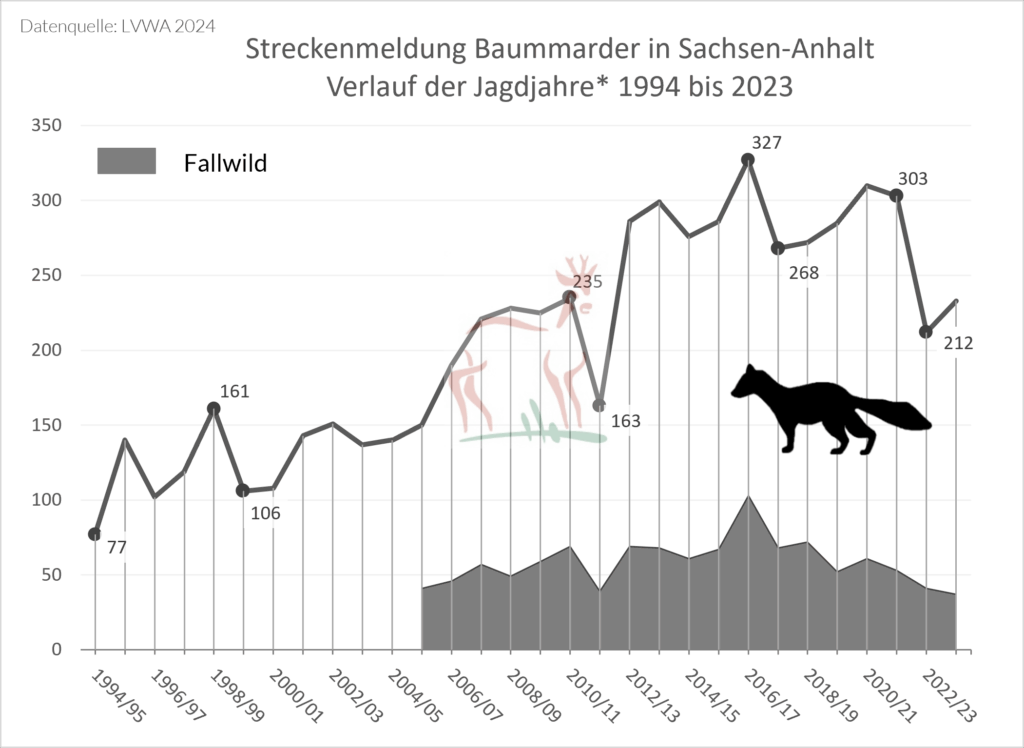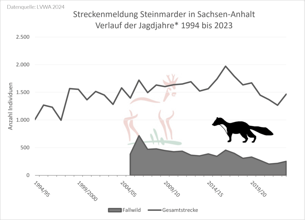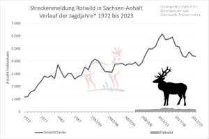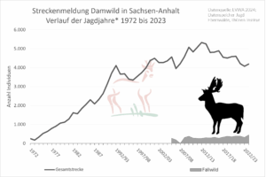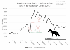 In der Vergangenheit wurden für viele jagdbare Arten die Streckenzahlen herangezogen, um eine Bestandsentwicklung abzuleiten. Diese Auswertung ist jedoch alleine nicht immer repräsentativ, da die Jagdstrecke neben der Bestandsdichte auch von vielen weiteren Faktoren beeinflusst wird wie beispielsweise die Bejagungsart, dem jagdlichen Fokus sowie der Witterung. Um dennoch eine fundierte Aussage zum Zustand der Population treffen zu können sind die vorliegenden Zahlen durch weitere Daten zu ergänzen. In Kombination mit den erworbenen Daten aus den Wildtiererfassungen ist es möglich eine Einschätzung zur Entwicklung der Wildtierbestände zu erhalten.